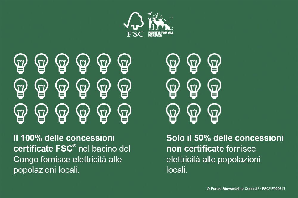 Uno studio intrapreso dal Center for International Forestry Research (CIFOR) ha dimostrato che le attività forestali gestite secondo gli standard FSC forniscono benefici tangibili alle comunità, dalle condizioni di lavoro alle infrastrutture pubbliche. E' emerso, ad esempio, come la certificazione FSC abbia portato “un notevole progresso sociale” per coloro che vivono e lavorano nell’ambito delle attività di taglio certificate FSC nel bacino del Congo.