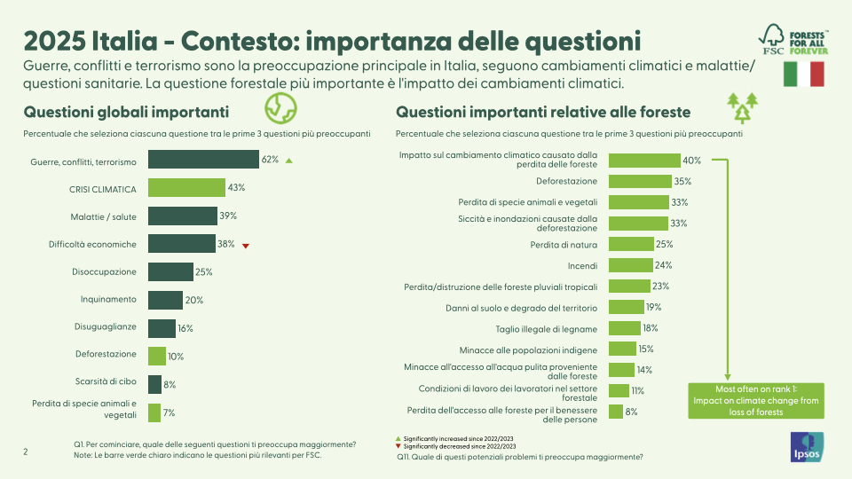 *Dettagli sulla ricerca di mercato: la ricerca FSC Global Consumer Awareness 2025 è stata commissionata ad IPSOS ed ha intervistato oltre 40.000 persone in 50 mercati. I confronti si basano sui 32 mercati che sono stati oggetto di indagine sia nel 2022 che nel 2025.